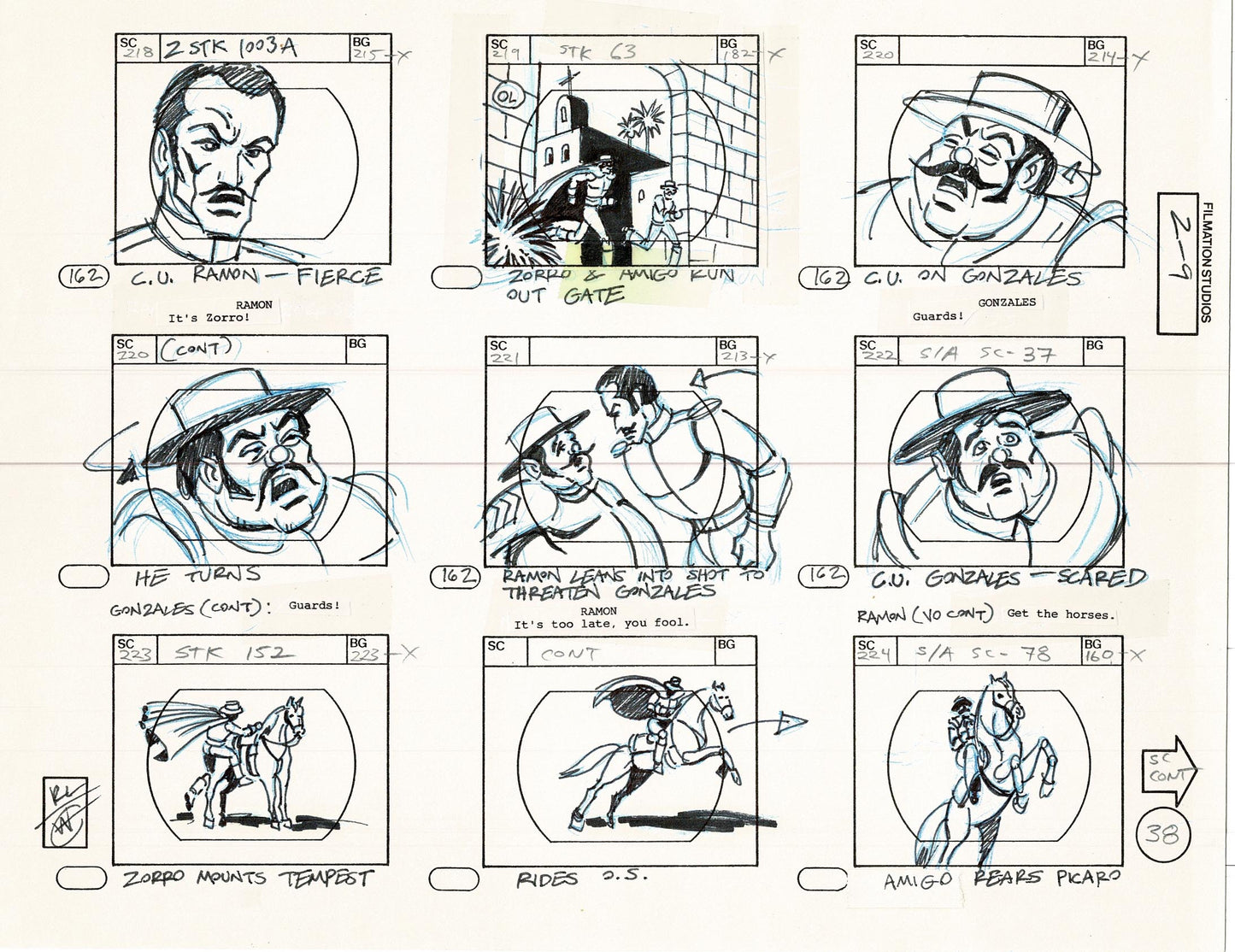 Zorro Storyboard Art Cartoon Page Vintage Animated Filmation 1981 B-014